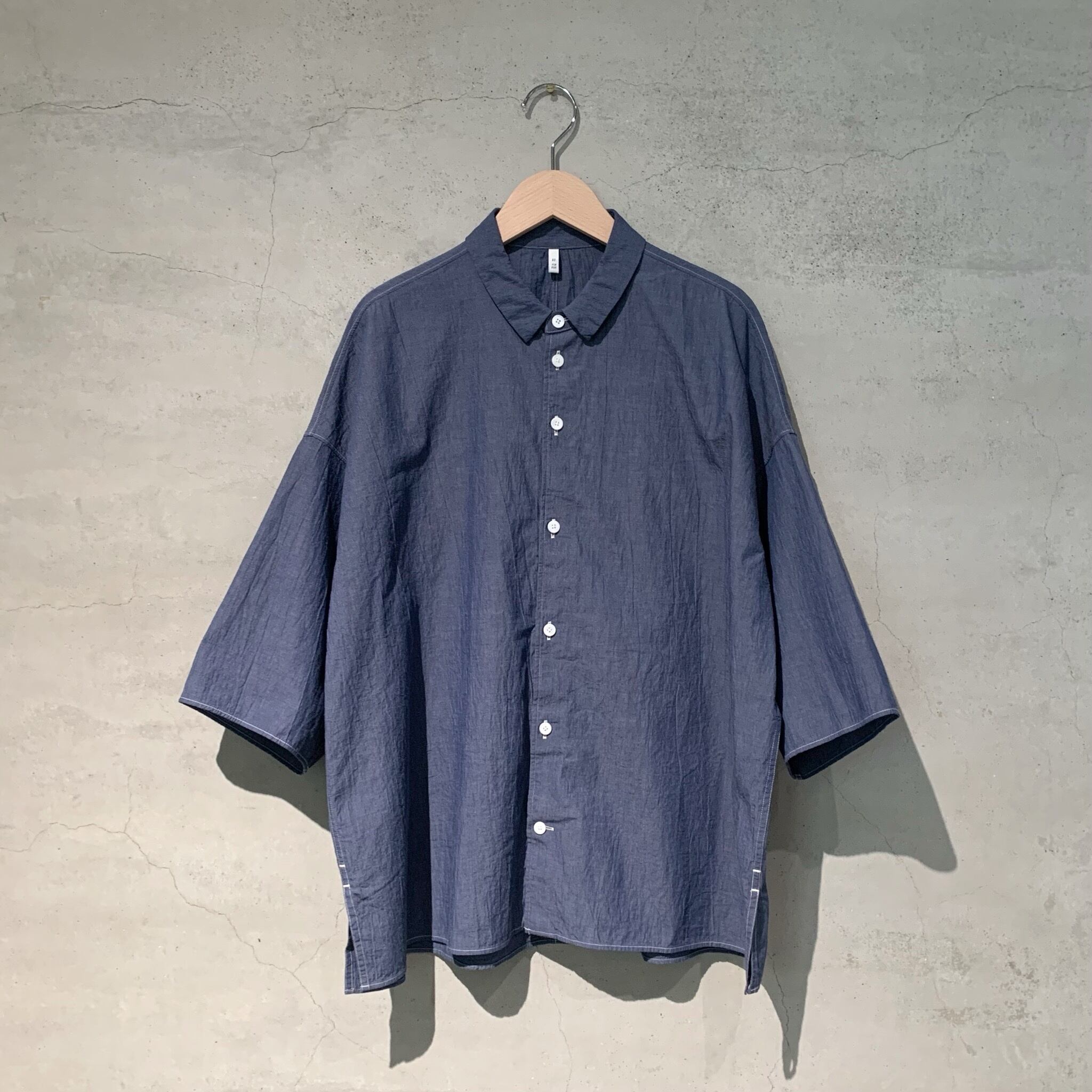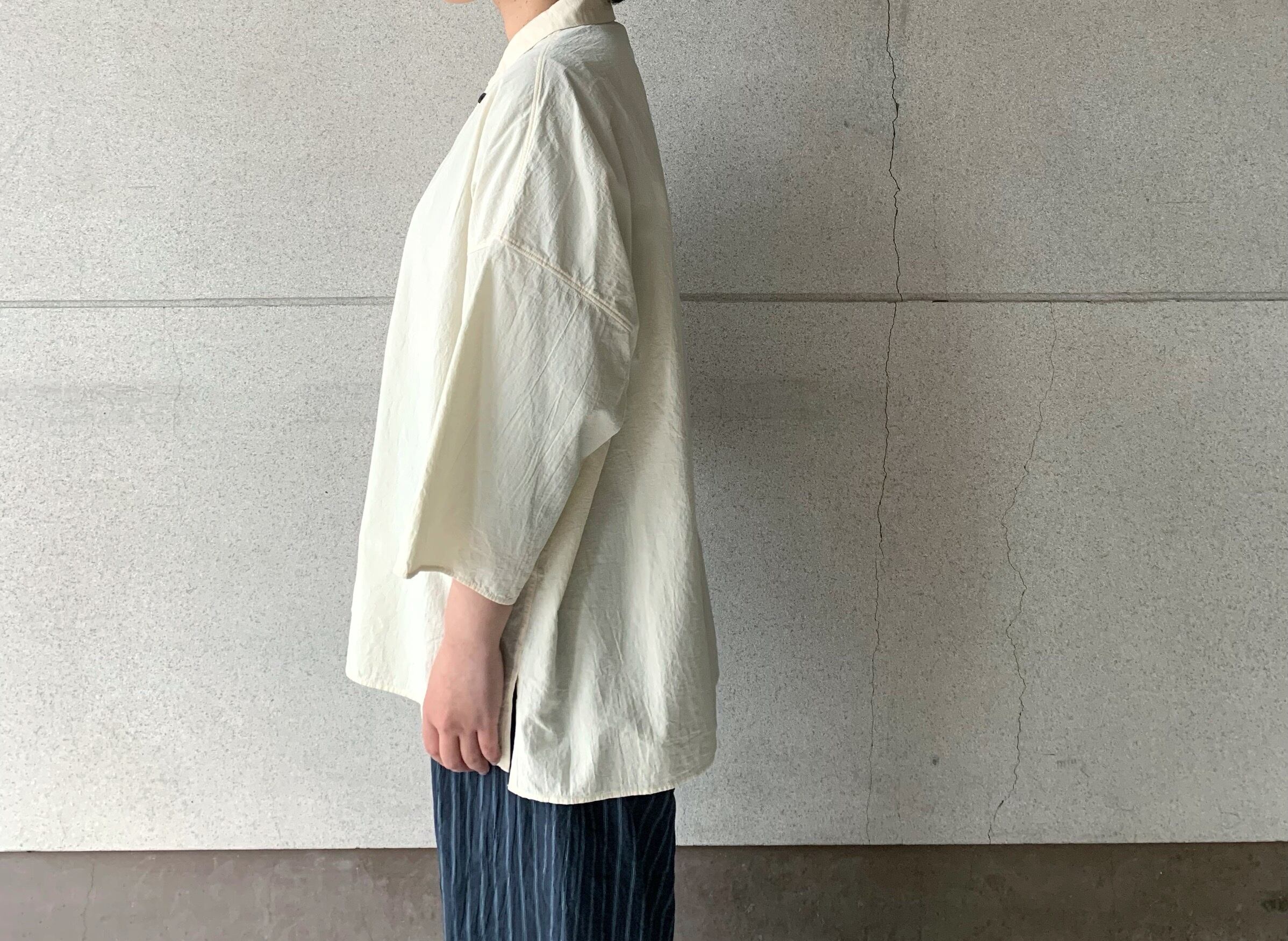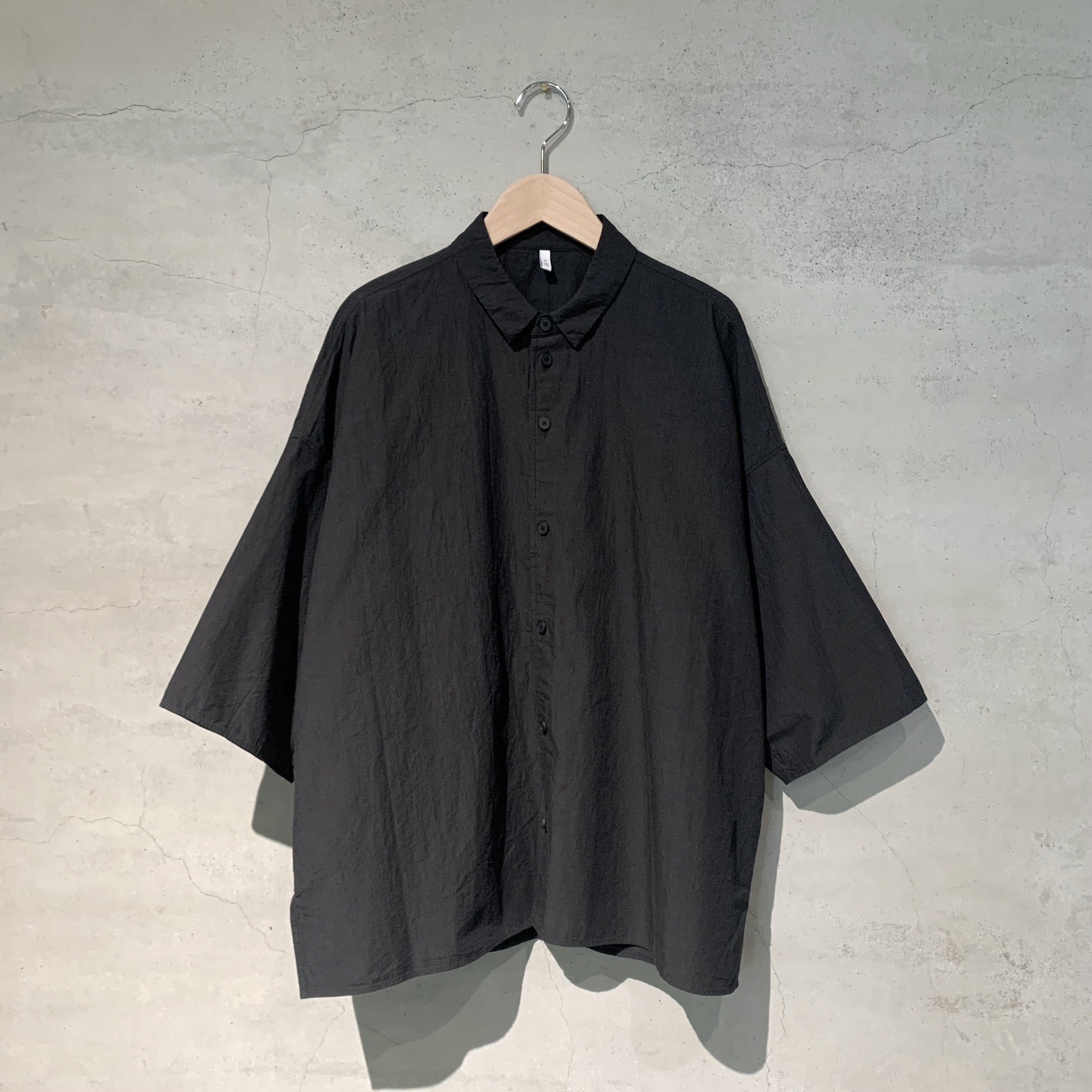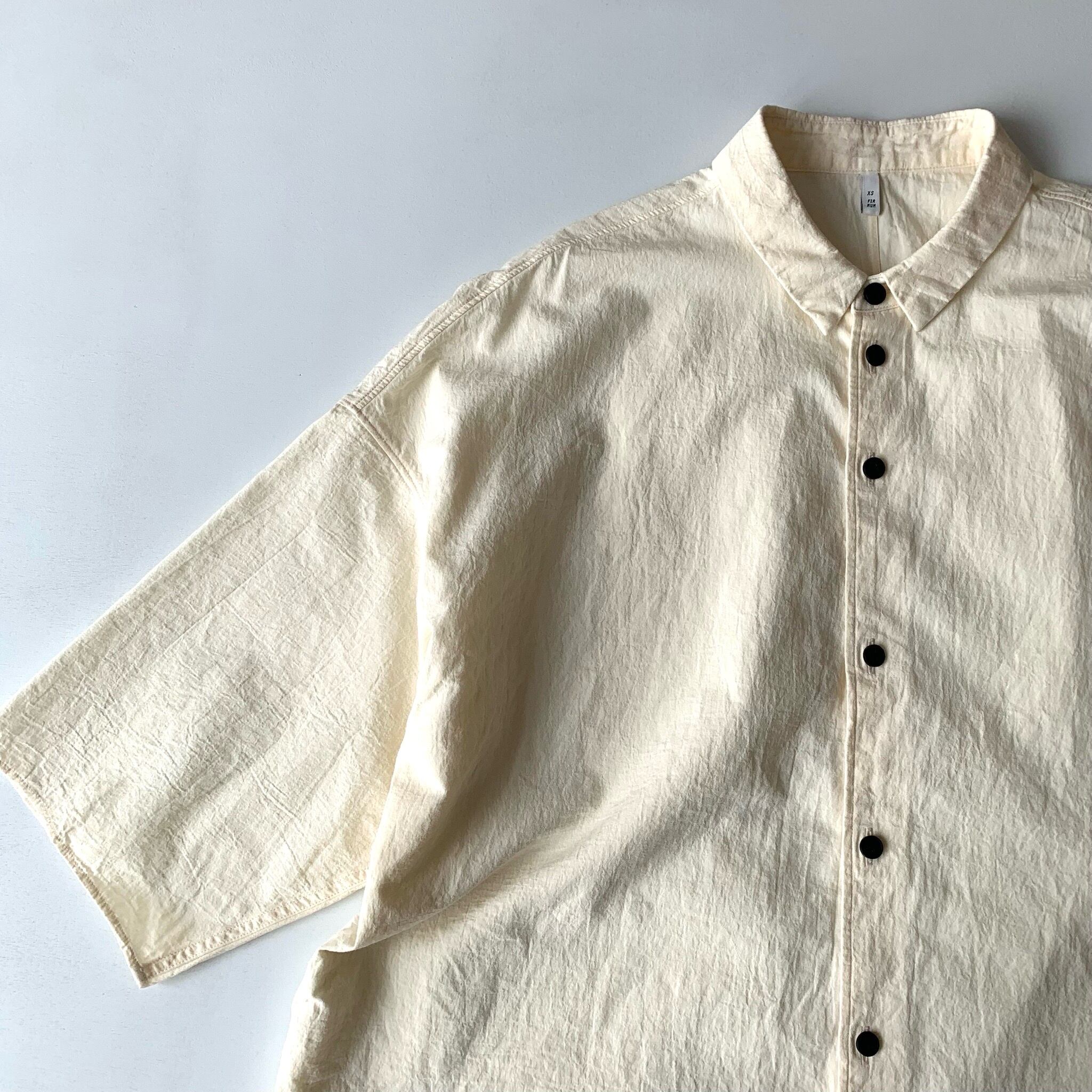 台襟付きシャツカラーオーバーサイズシャツ。