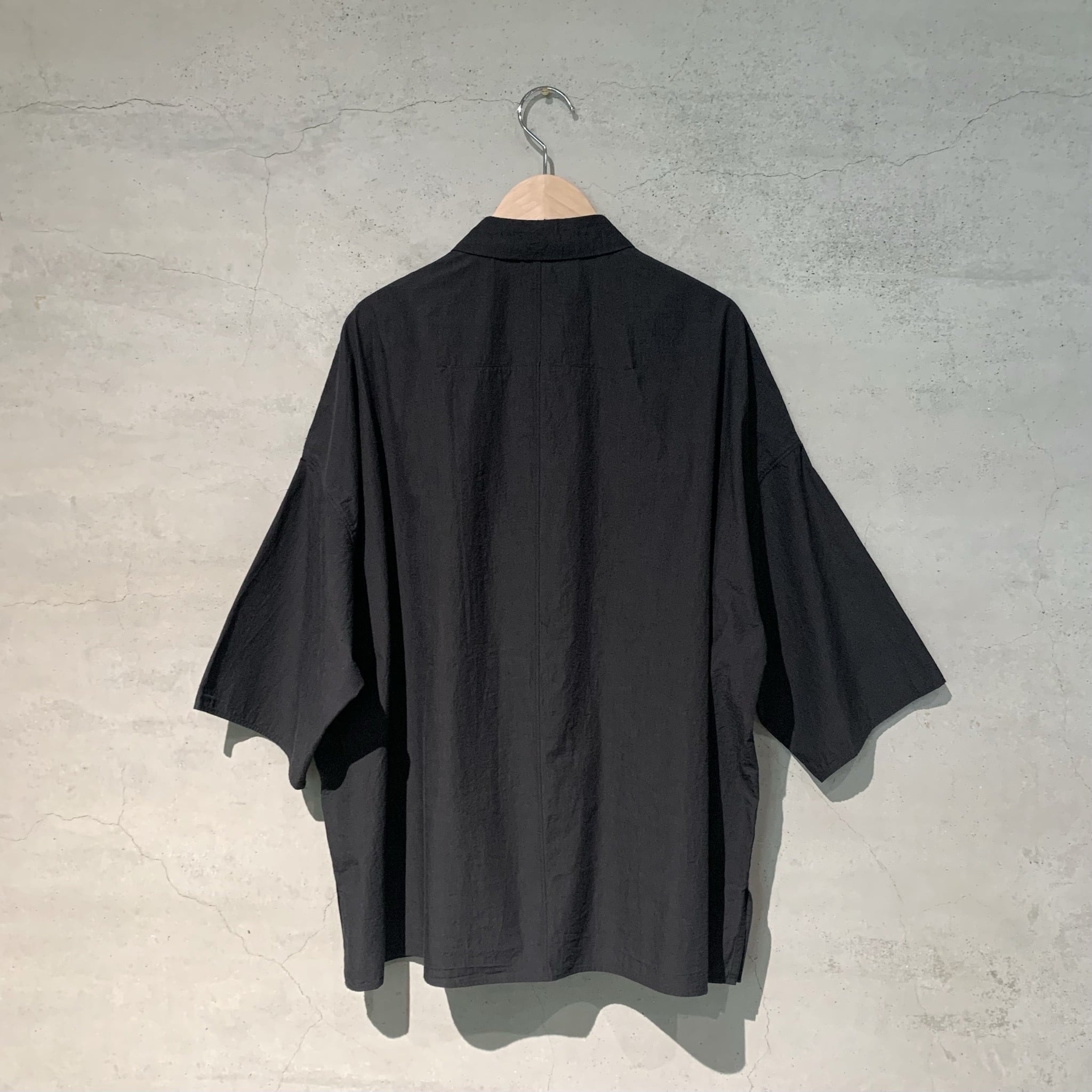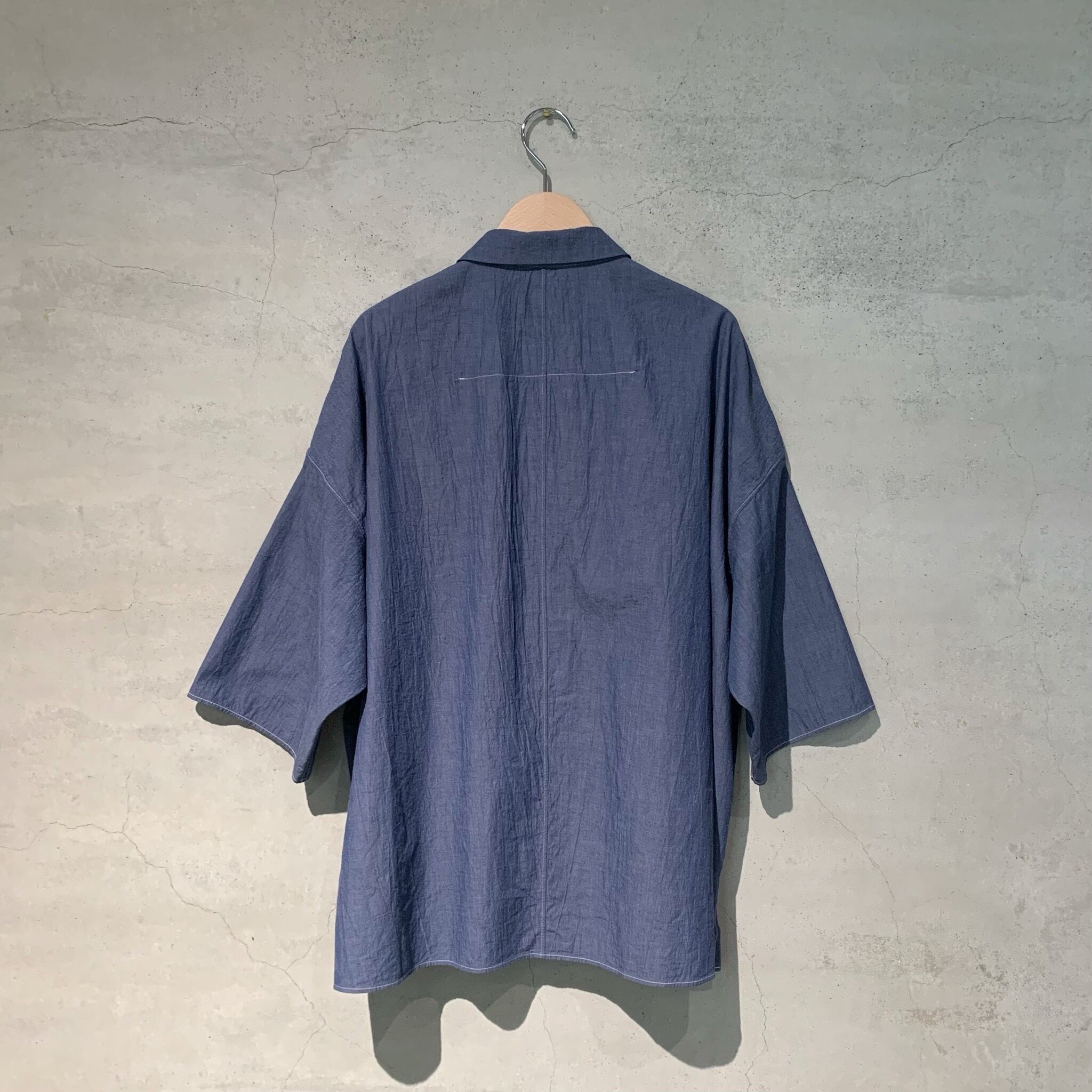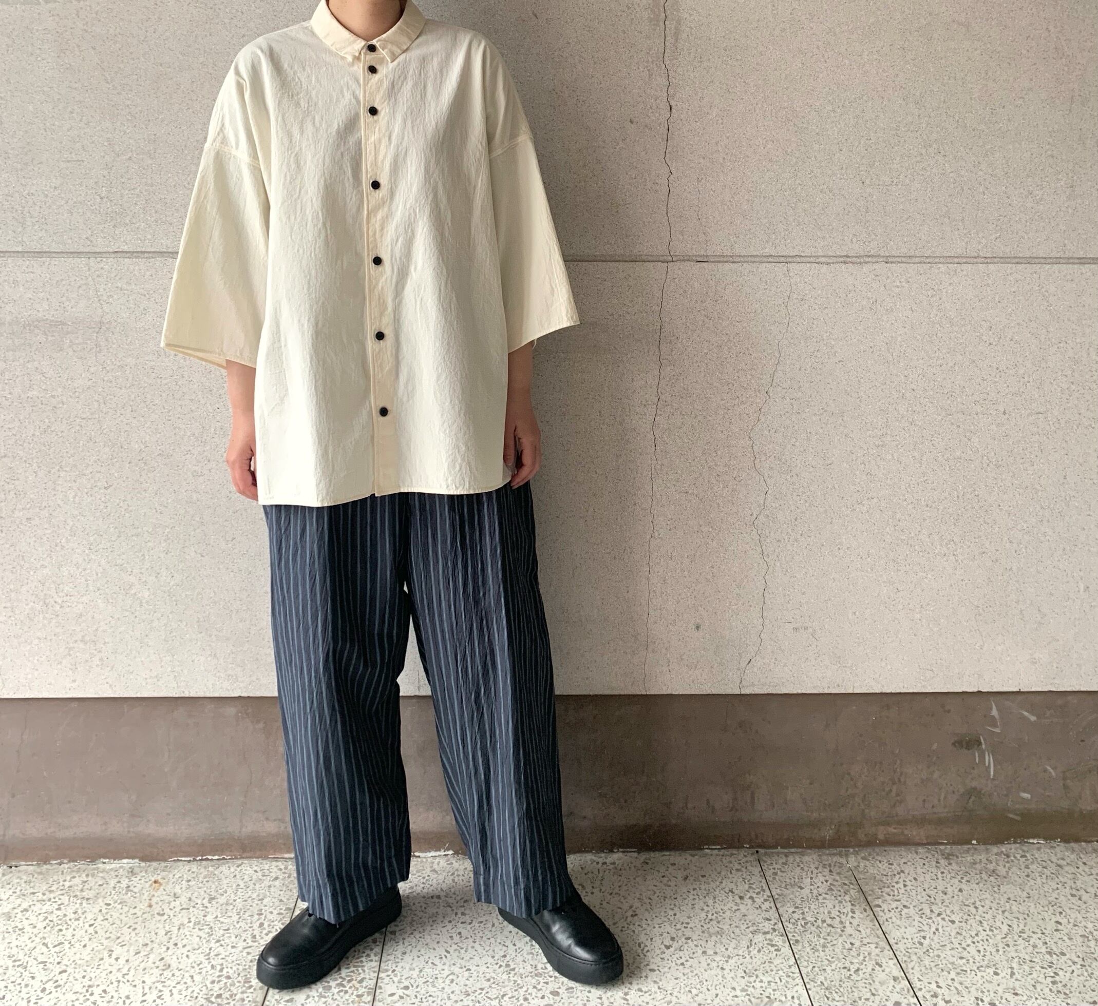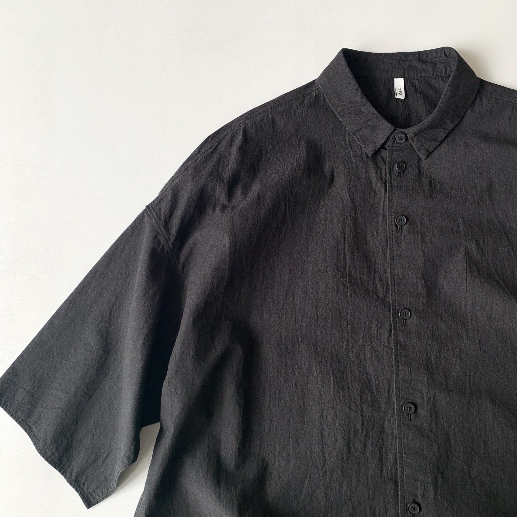 台襟付きシャツカラーオーバーサイズシャツ。