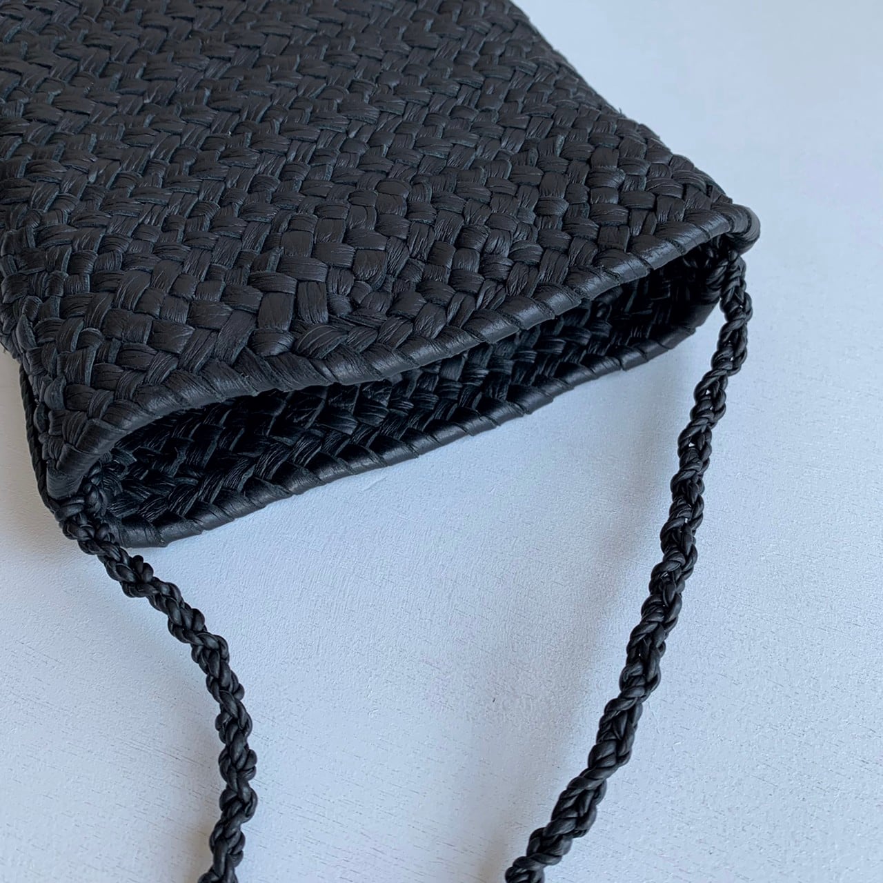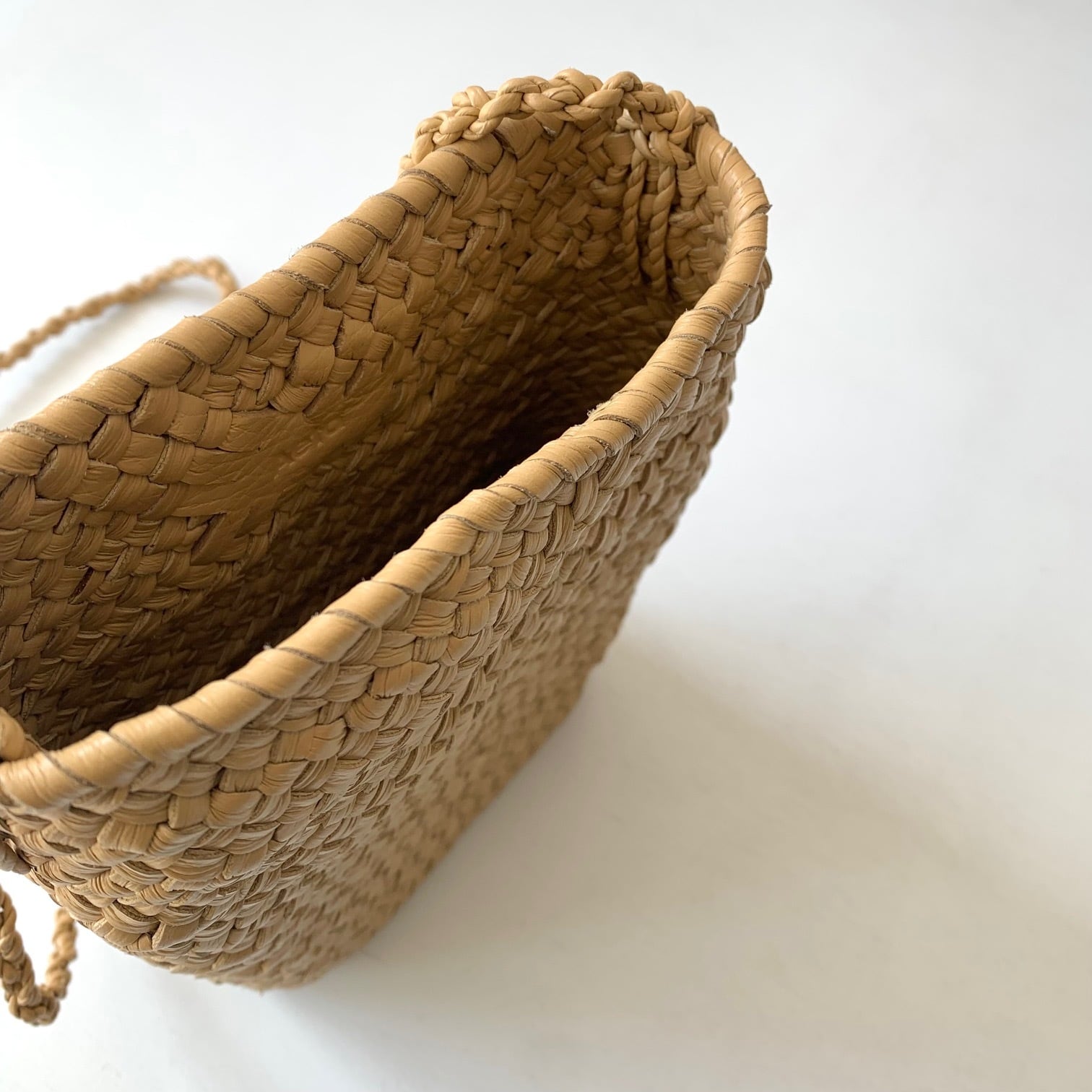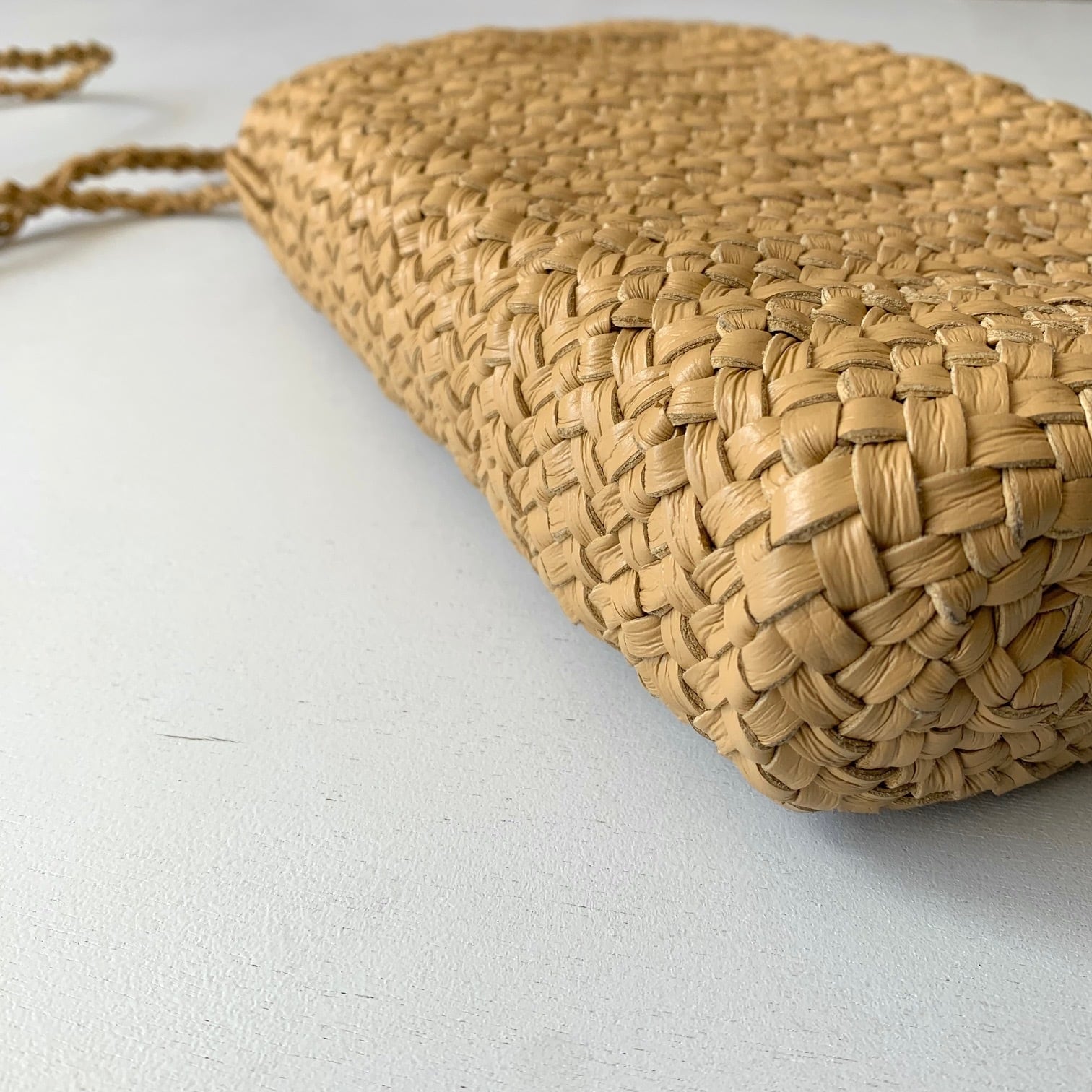 貼り合わせた革を編み込んで形成しているため内側まで美しく、