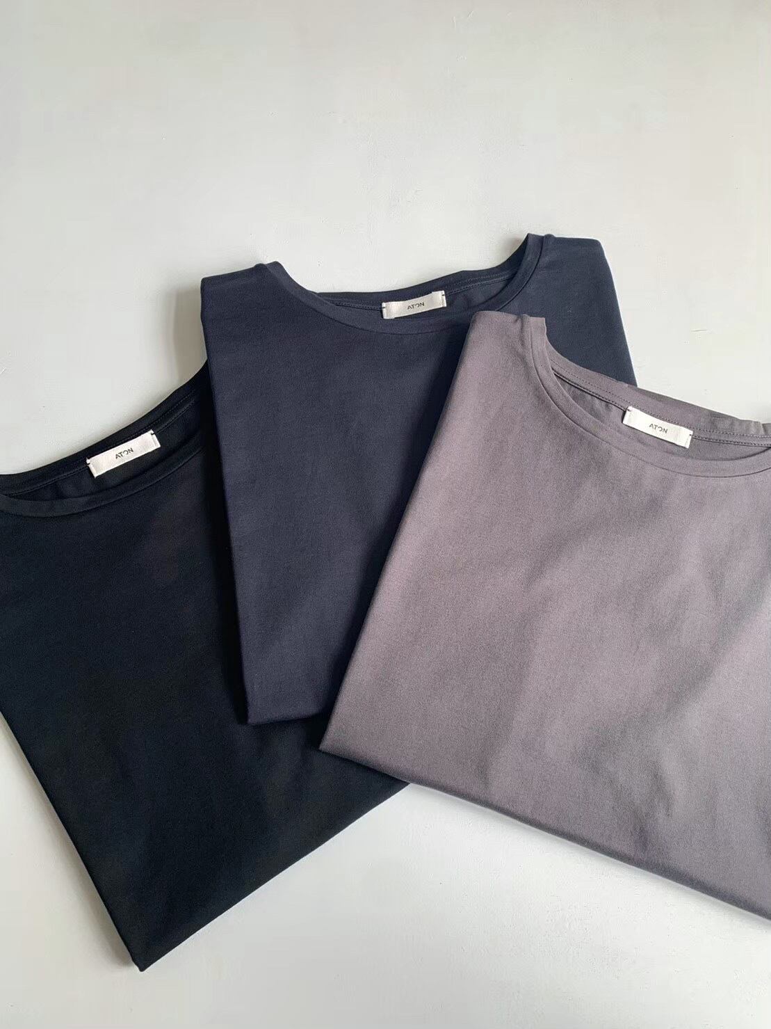 双糸にすることで、光沢感としなやかさを備えたATONオリジナルのジャージー素材。