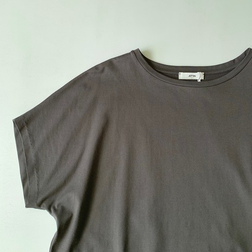 肩から二の腕を包み込むようなキャップスリーブTシャツ。