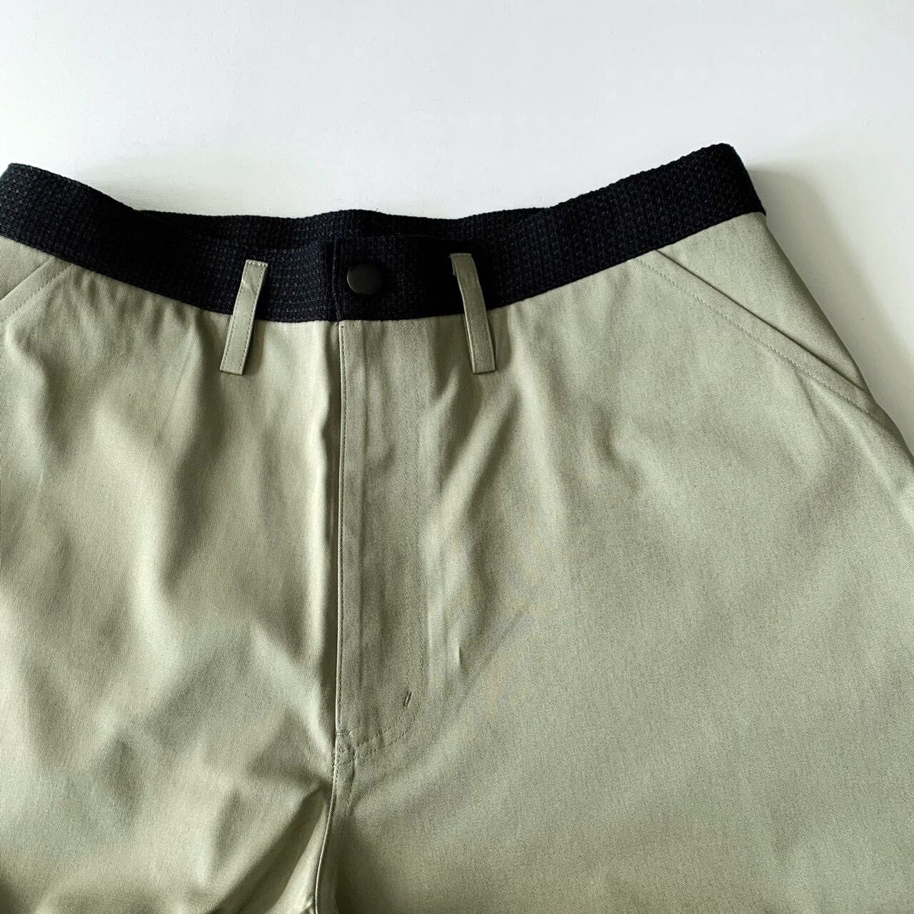 ゴムにサイズ調節のボタンホールがあるので、ベルトを使わずウエストを絞って履けます。