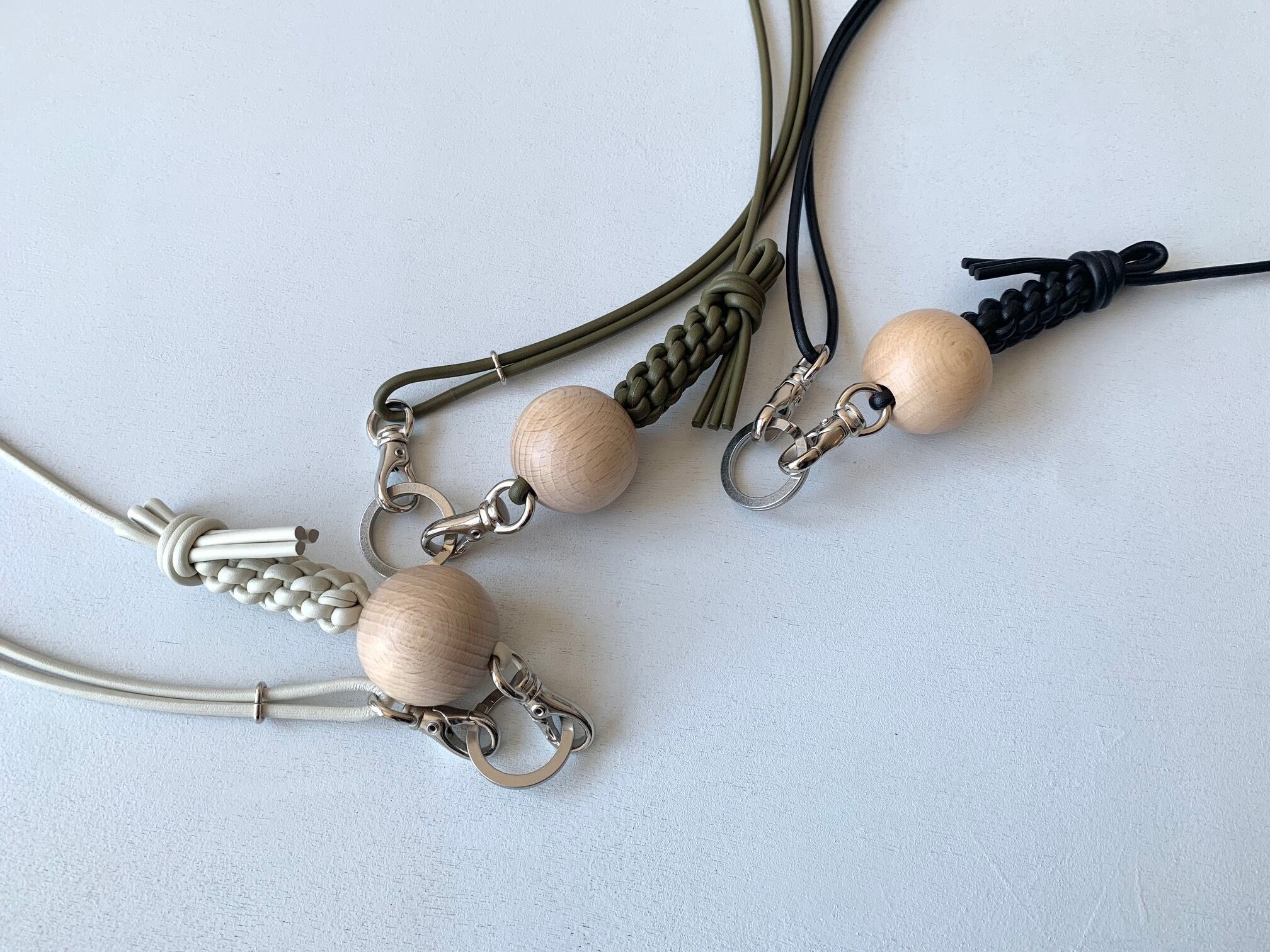 ブランドを象徴する3つのマテリアルをひとつに組み合わせて、オブジェのようなストラップに。