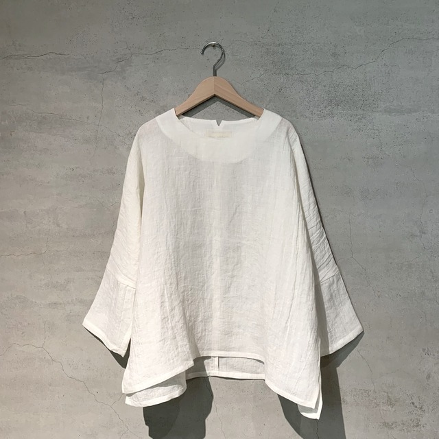 Light merino wool linen cotton glencheck elegant gathered shirt