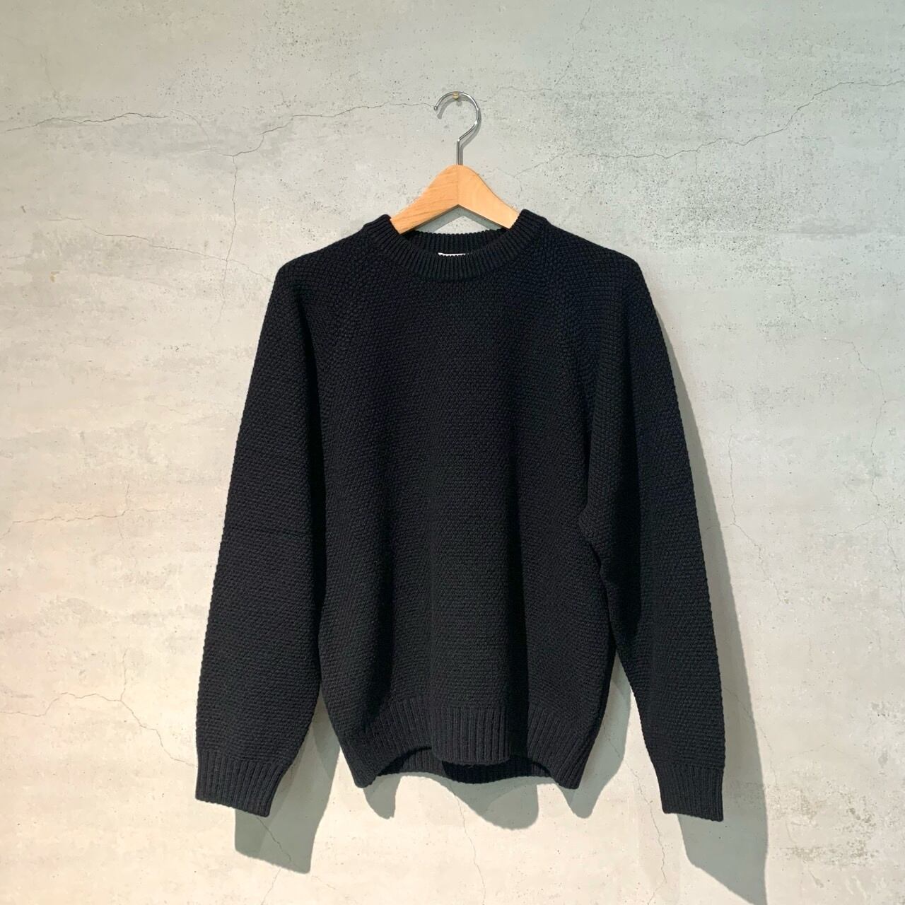 程よいリラックス感が特徴のラグランスリーブのクルーネックセーター。