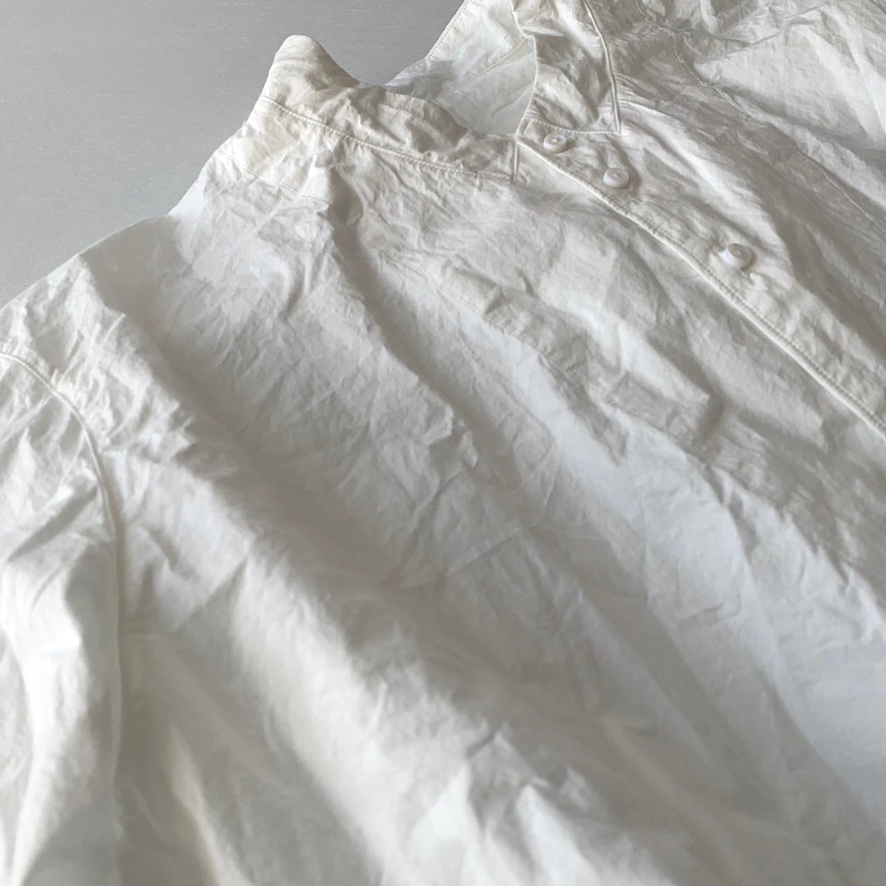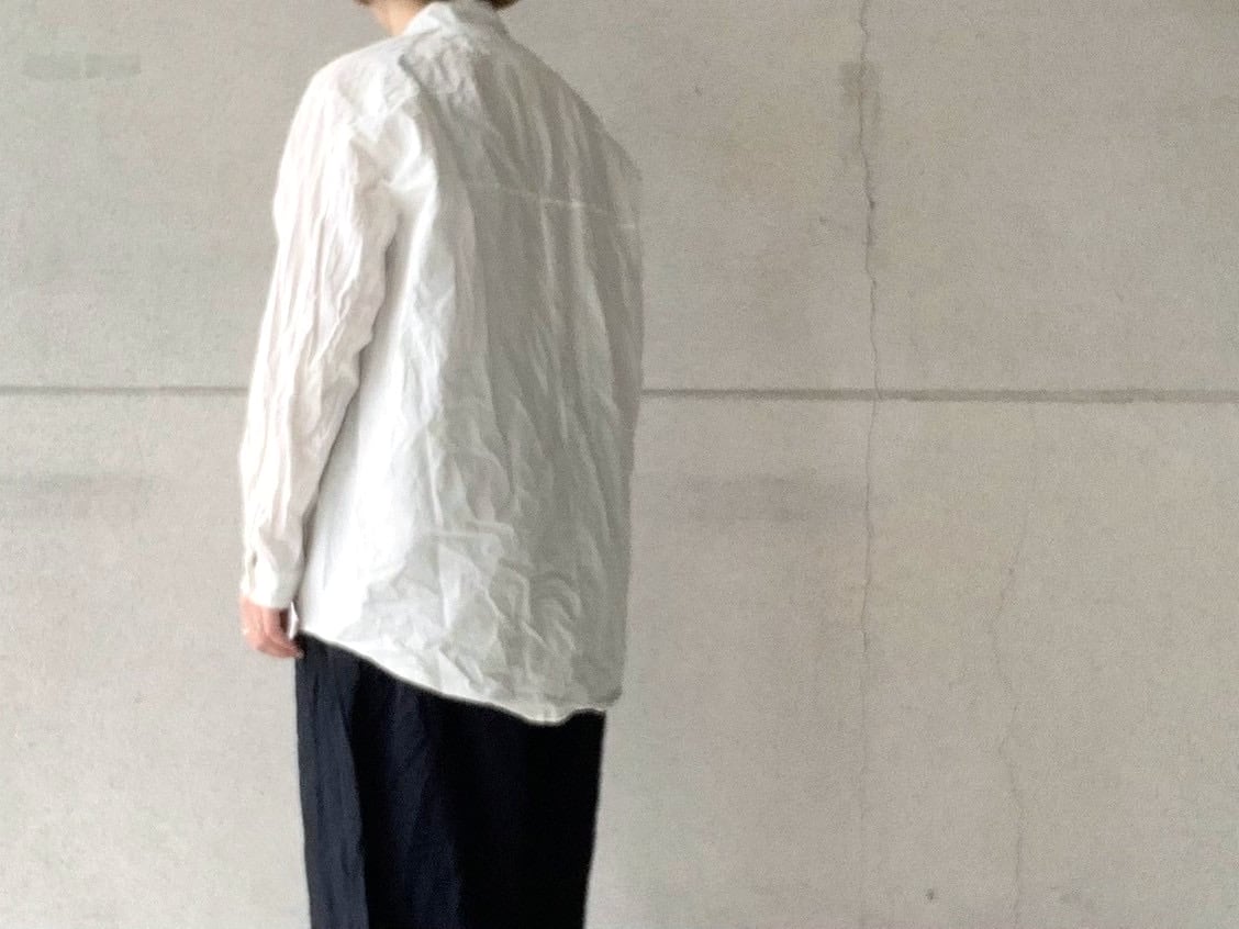 前身頃〜袖〜後身頃を1パーツで作った"1ピースフェイクカラーシャツ"。