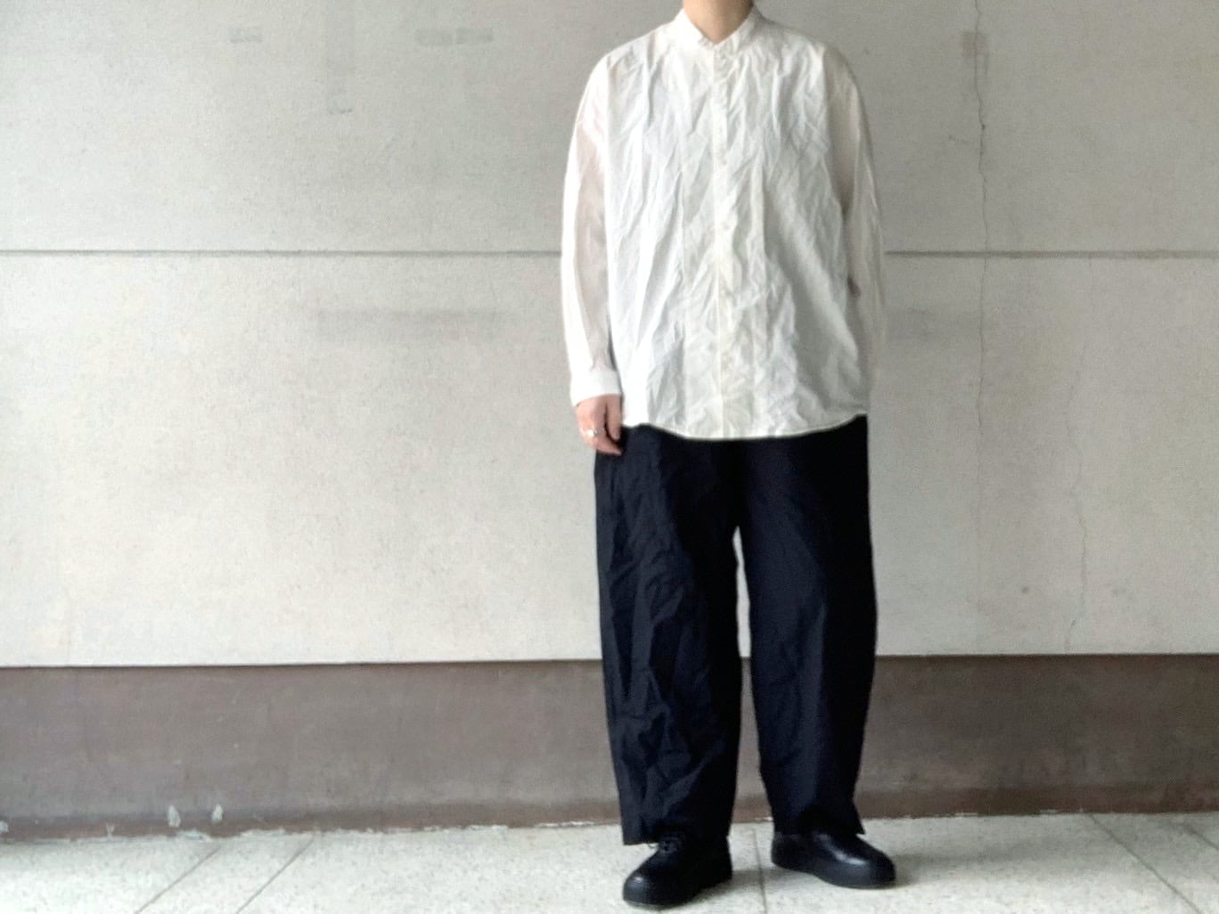 2度加工を入れることで生地に強いハリコシとシワ感を与えています。